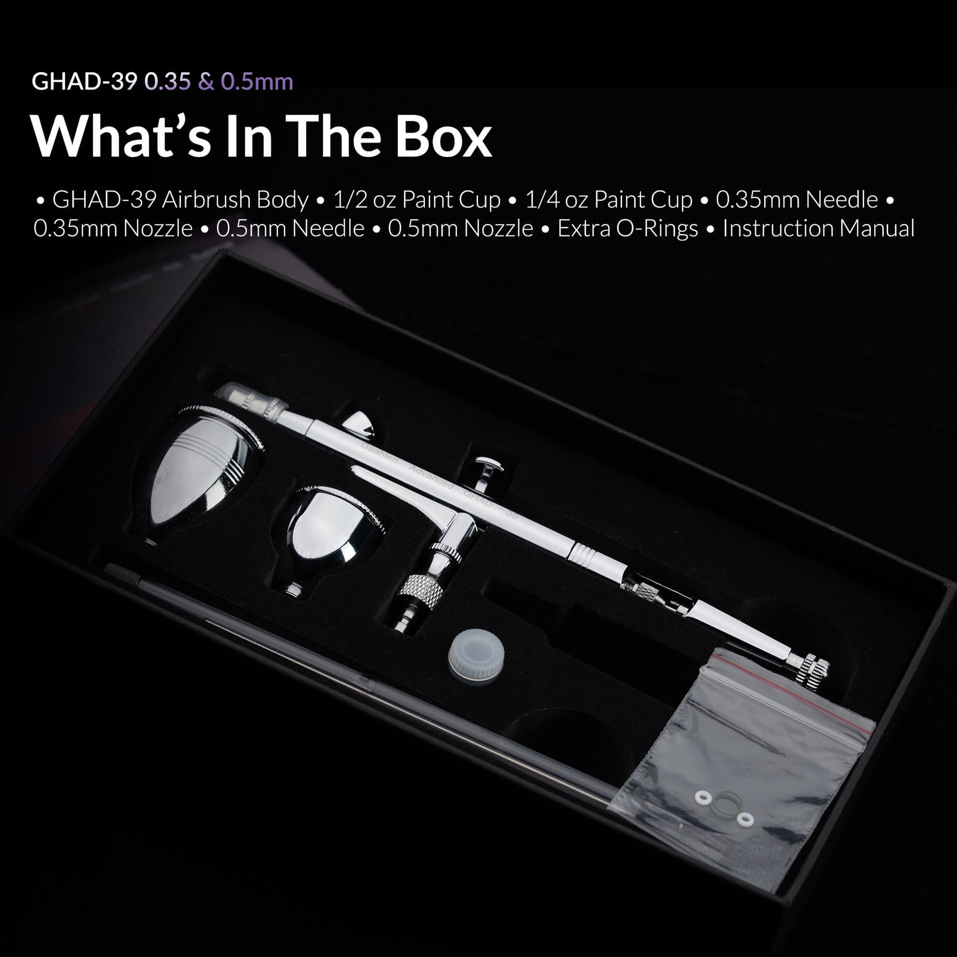 Door middel van de 0,3-0,5 en 0,8 mm nozzle kan de gebruiker de lijnen spuiten in verschillende diktes wat het een van de meest veelzijdige airbrushes maakt. Compatibel met de meeste airbrush slangen en snelkoppelingen.